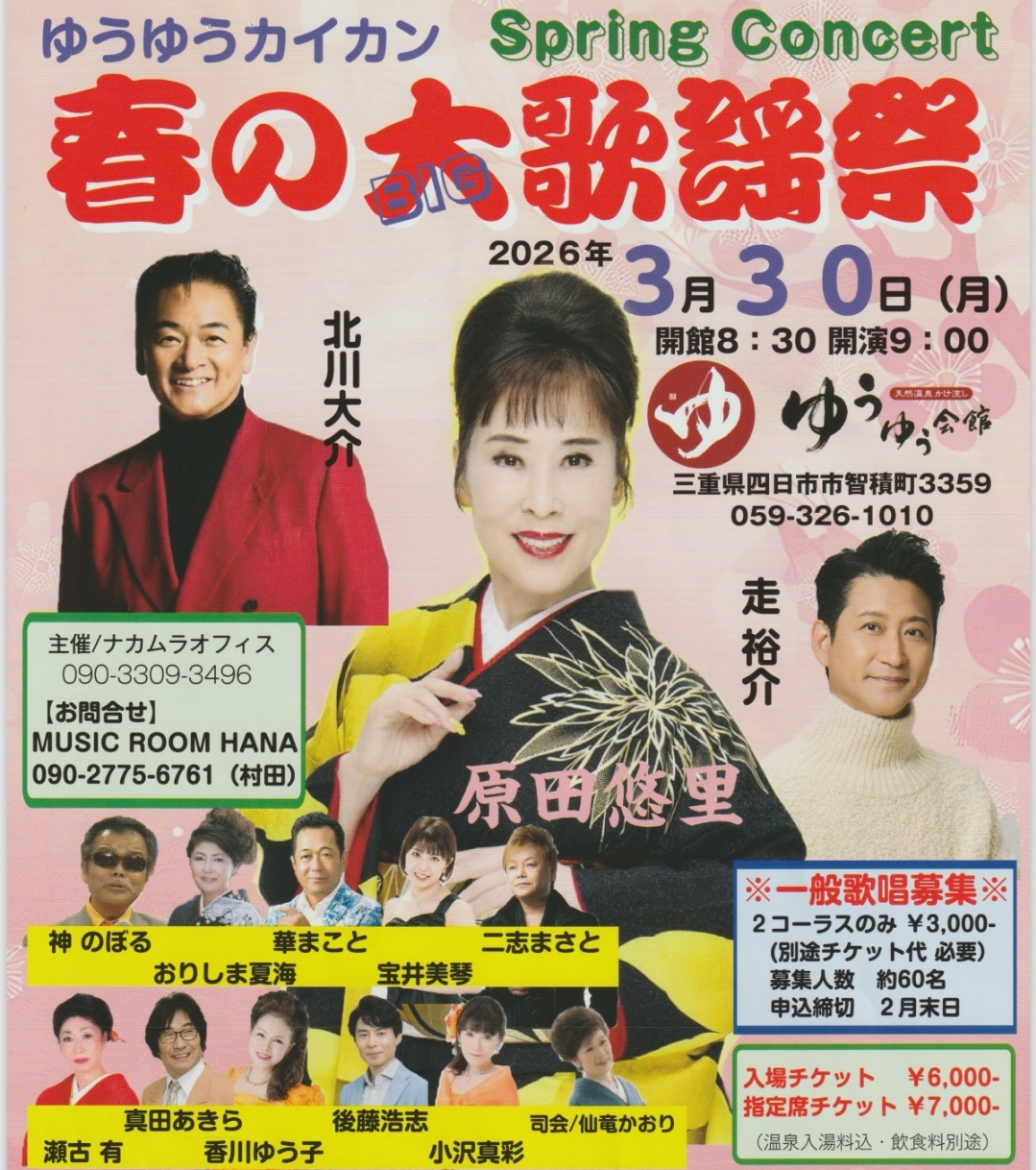 ゆうゆうカイカン「春の大歌謡祭」に出演いたします。